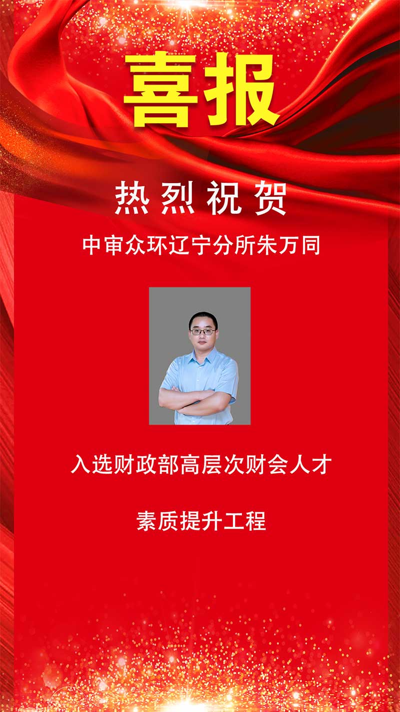 热烈祝贺中审众环辽宁分所朱万同入选财政部高层次财会人才素质提升工程
